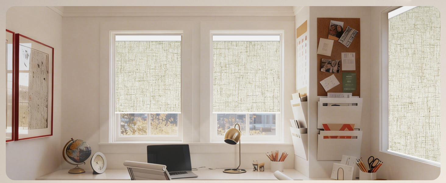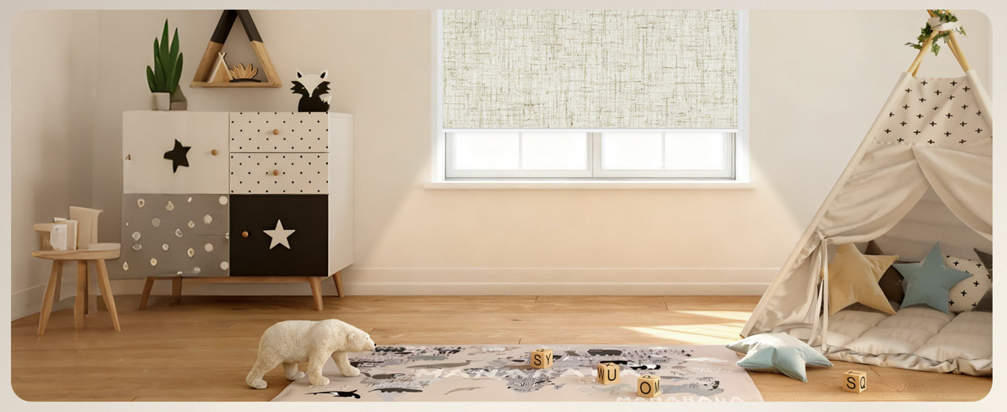 Material: 100% blackout polyester fabric, offering a room-darkening environment. Motorized blackout shades help save energy, reduce noise, ensure privacy, and block UV rays. The cordless design is child/pet-friendly. Ideal for living rooms, bedrooms, kids' rooms, home offices, media rooms, and more. Indoor use only.
