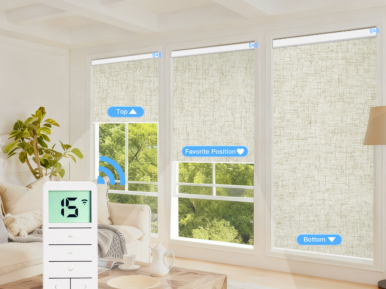 - 15-Channel Remote: Controls up to 15 blinds individually or together (recommended for multiple blinds).
