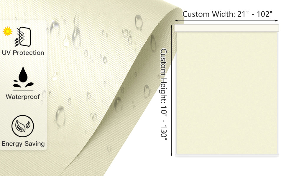 Made from waterproof vinyl, this fabric blocks 100% of natural light, filters harmful UV rays, and provides total privacy. Unsure about the color? Order a fabric sample swatch first.