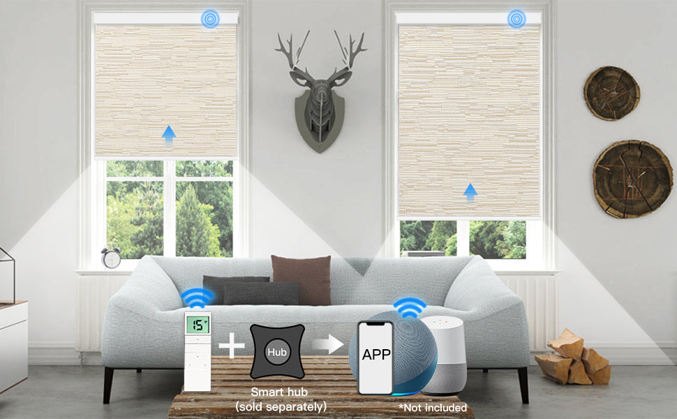 Effortlessly raise or lower the blind with a click of the remote. Connect an RF hub to Alexa/Google for voice, app, or scheduled control.