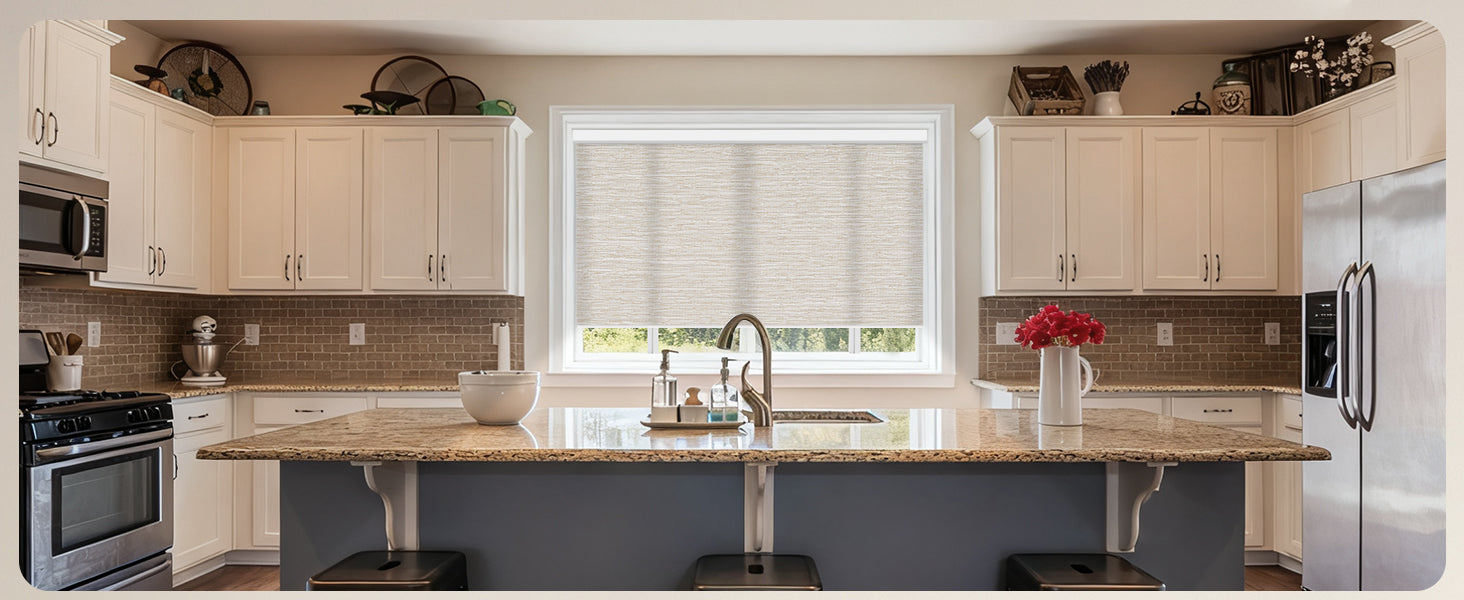 Gently filters natural light, reduces UV exposure, and provides daytime privacy while keeping rooms bright and comfortable. Unsure about the color? Get a fabric sample swatch first.