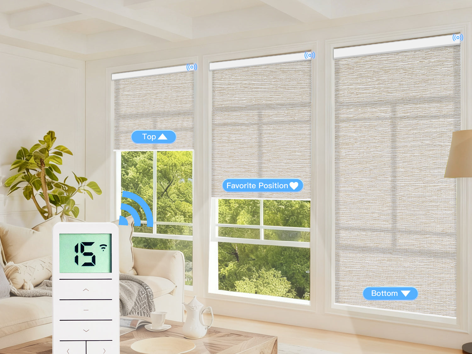 - 15-Channel Remote: Controls up to 15 blinds independently or simultaneously—ideal for multiple blinds.